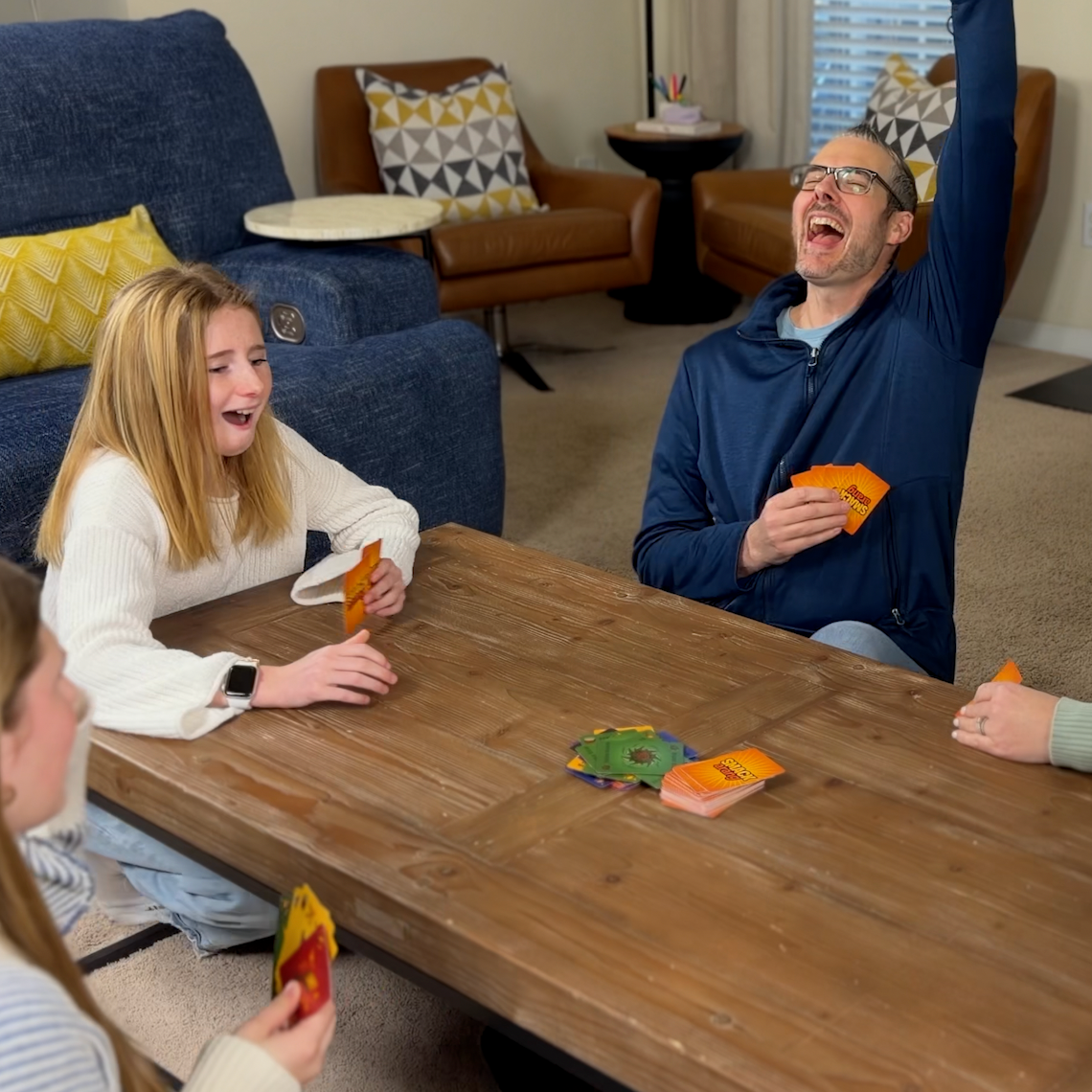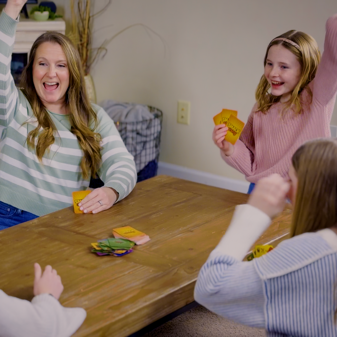 A fast-paced card game full of chaos, strategy, and laughs built for family game night and competitive fun.